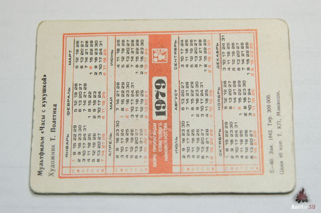 Переливной календарь СССР 1979 Часы с кукушкой